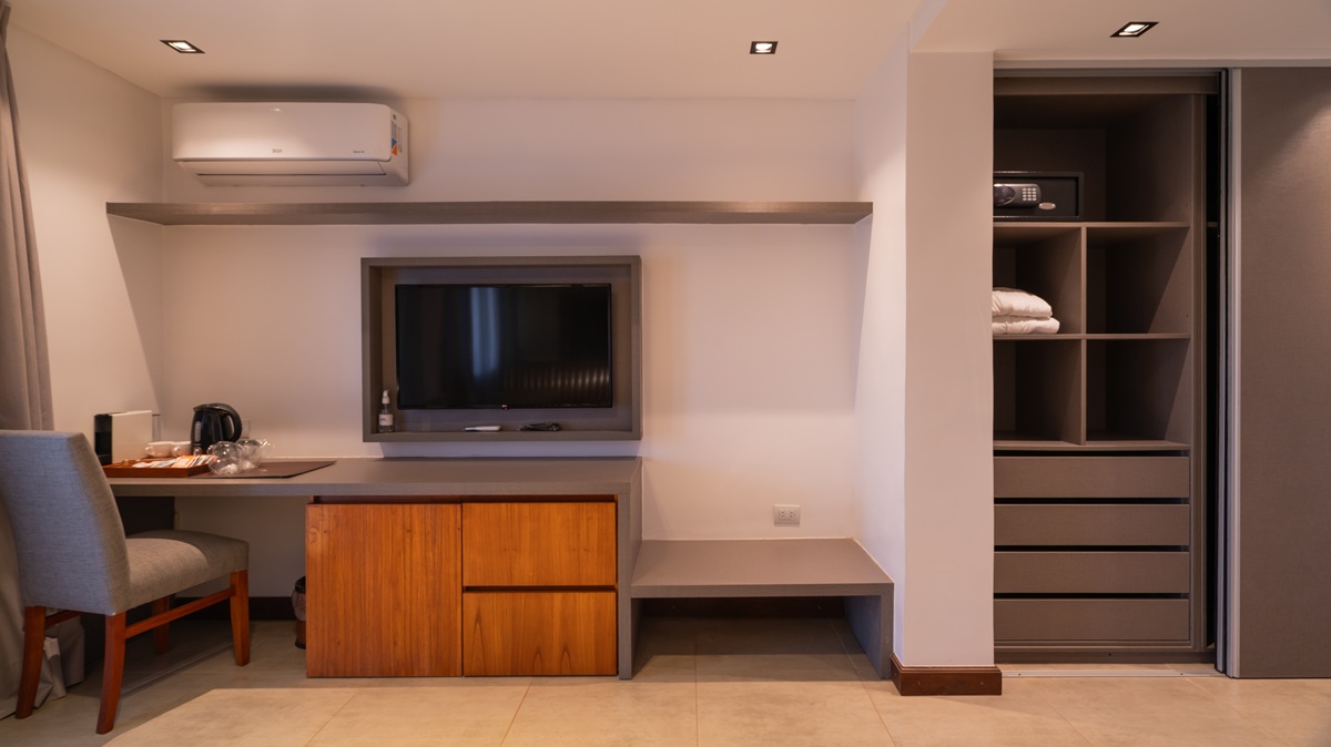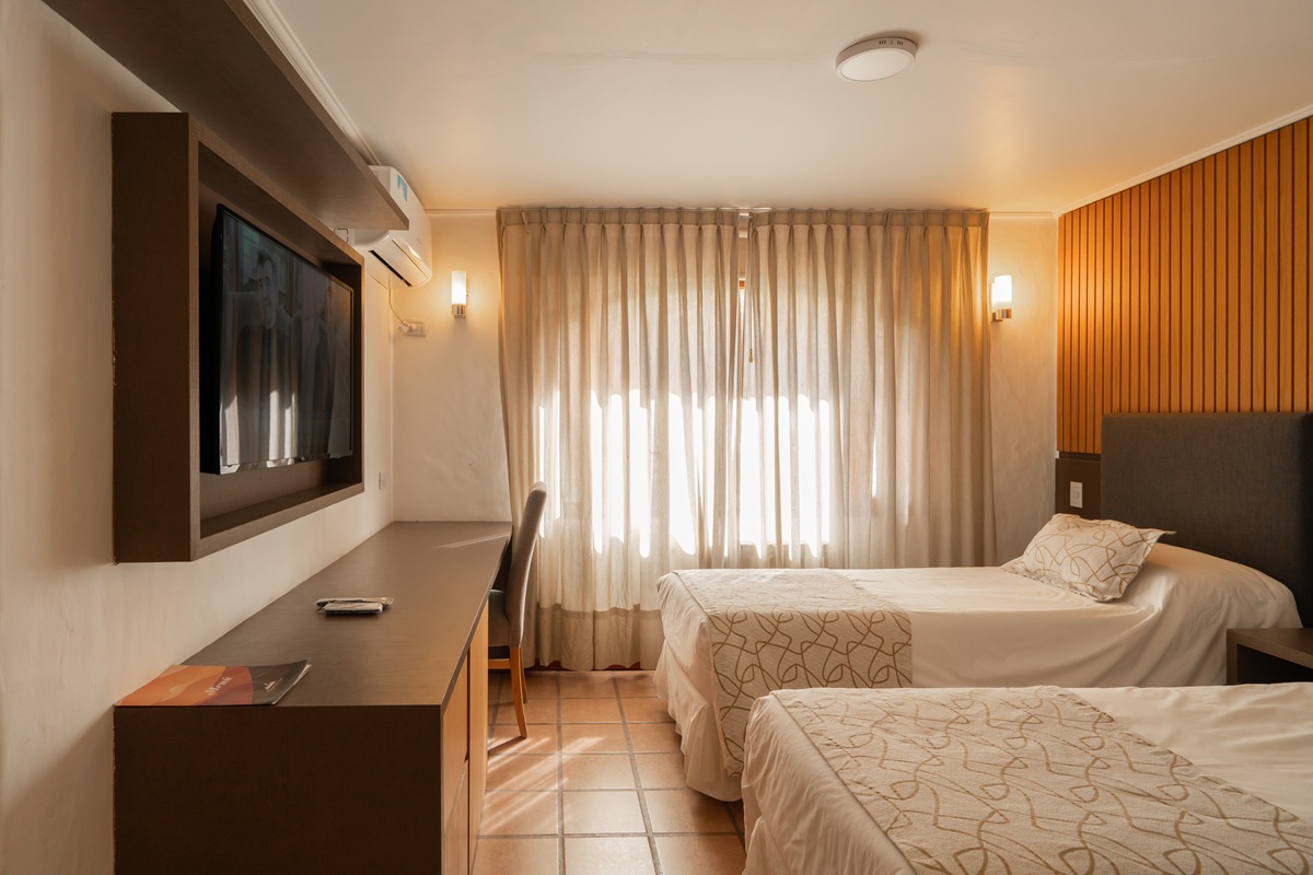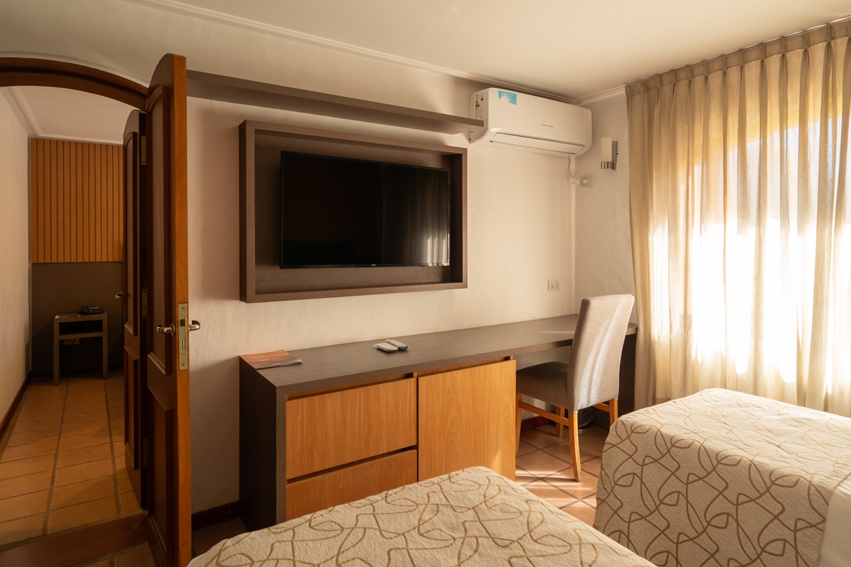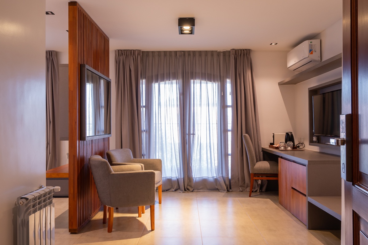 En todas nuestras habitaciones encontrarás: WiFi -Smart TV con Netflix y todas las apps que necesitás para disfrutar - cajonera - escritorio - mini heladera - caja fuerte - secador de pelo - baño con amenities.